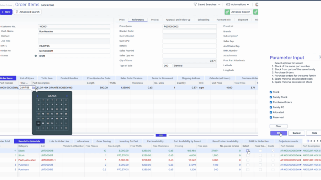Search material by its dimensions